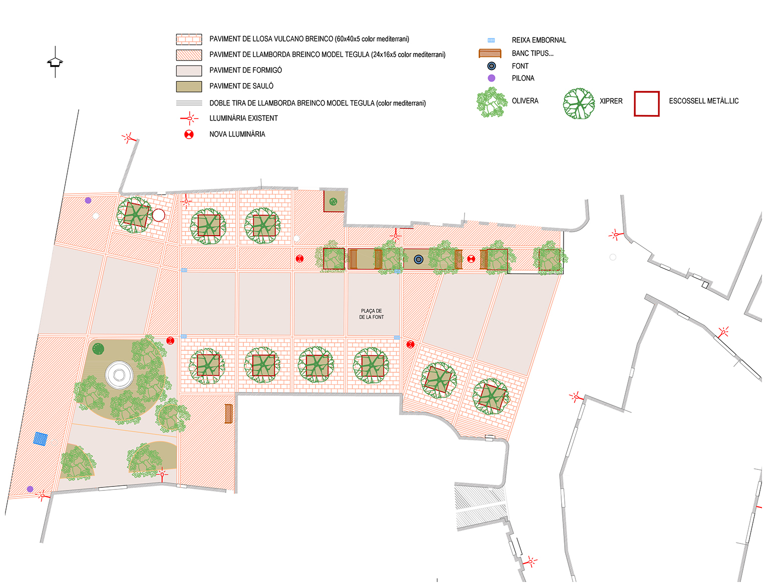 Aquesta actuació servirà per reestructurar tota la plaça, renovar el paviment, canviar la xarxa d’aigua i soterrar les línies elèctriques, telefòniques i de telecomunicacions, tal com podeu veure en el projecte.