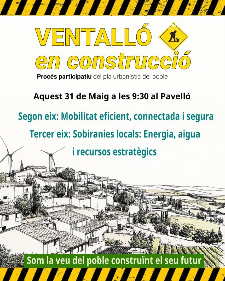 El 31 de maig de 2025 es va fer la segona reunió del procés participatiu per tractar el segon i tercer eix de treball: la mobilitat eficient, connectada i segura, i sobiranies locals (energia, aigua i recursos estratègics).