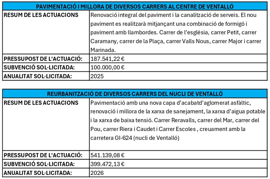 Mitjançant decret d’alcaldia de 9 d’abril de 2025 es va sol·licitar a la Generalitat poder utilitzar aquests diners per finançar les següents actuacions: